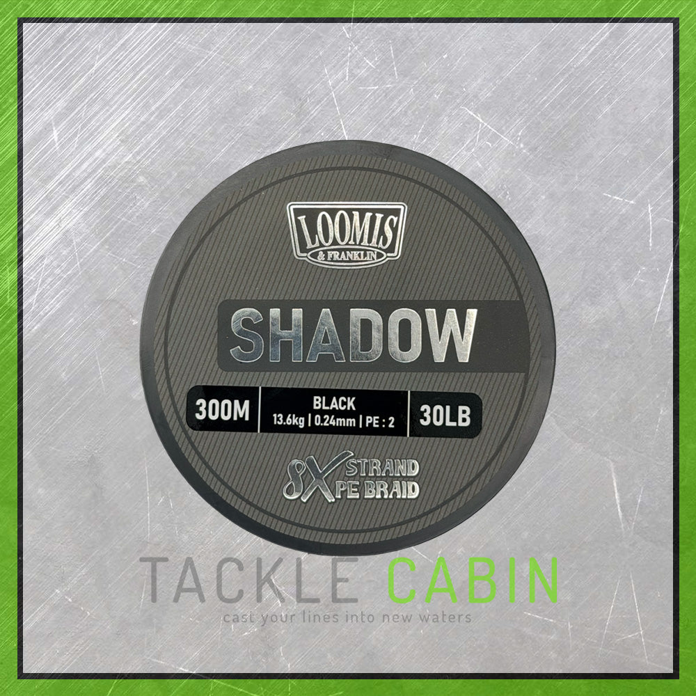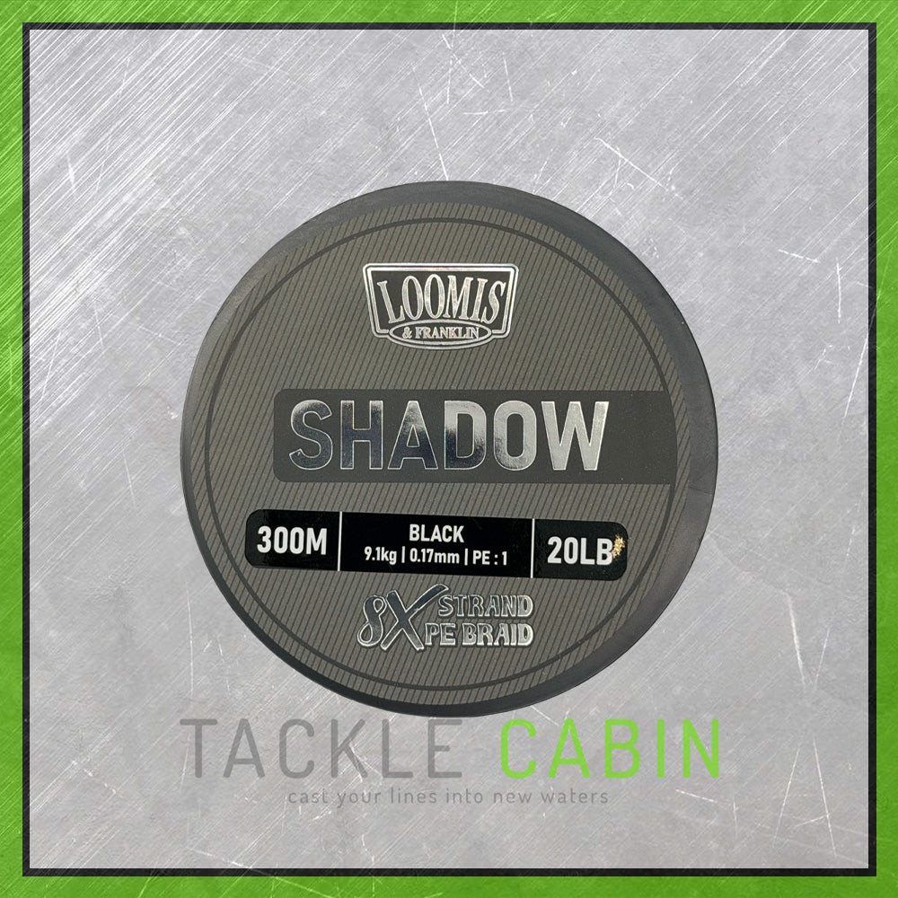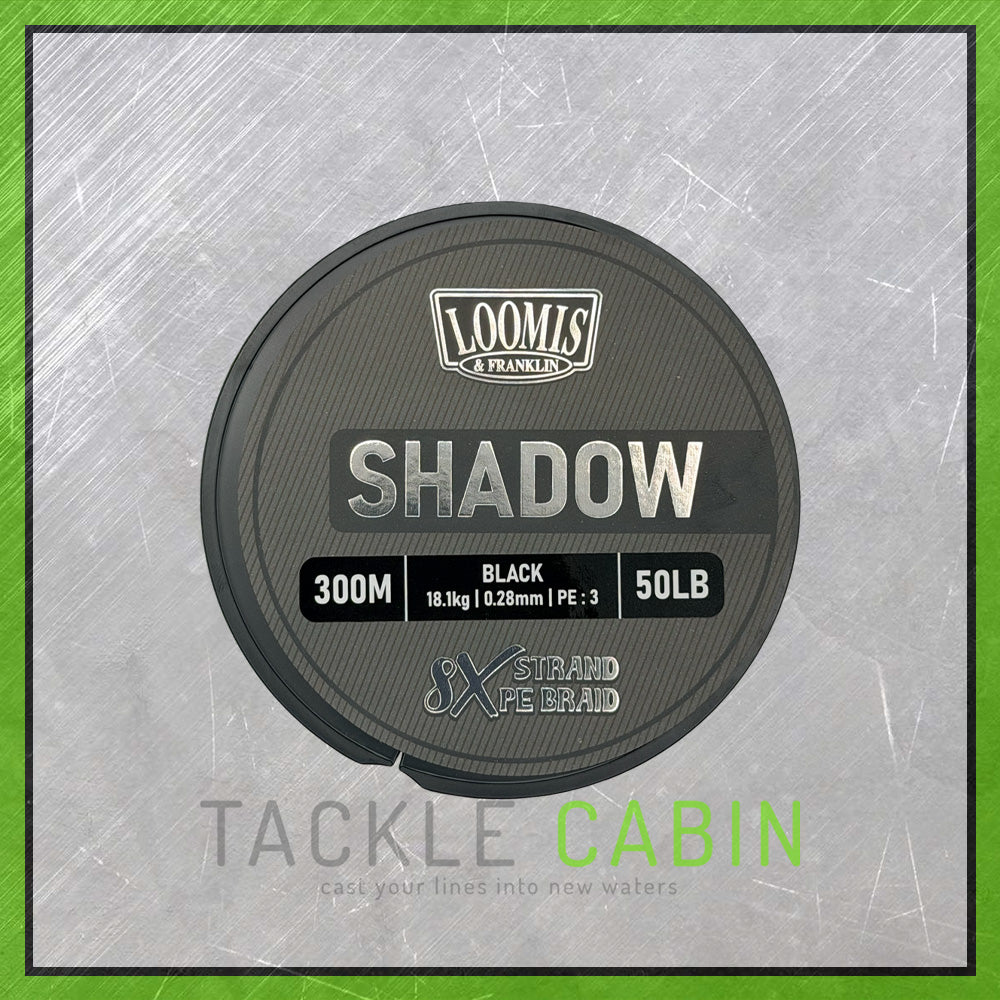 Introducing the new Loomis & Franklin Shadow Braid, featuring our advanced Colour Fast Technology that will never fade. The 8X strand PE fibres are woven from Black fibres that are not dyed, ensuring the colour stays true for the entire life of the braid. The consistent PE base fibres deliver a smooth-casting, supple braid with excellent abrasion resistance, ideal for all fishing applications. Available in Black in 20lb, 30lb, 40lb, and 50lb breaking strains, and in 300m and 600m lengths